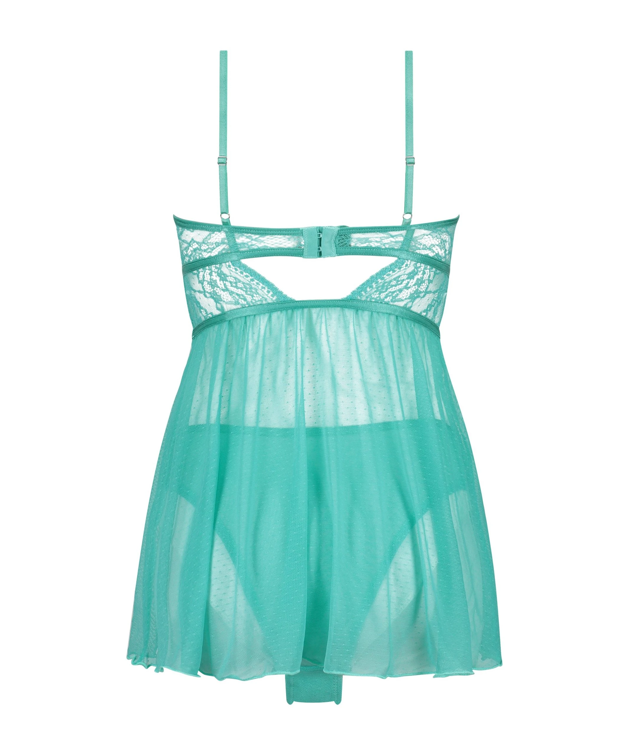 Fühle dich sexy in diesem umwerfenden Babydoll! Mit romantischen Allover-Spitzen-Look und Stäbchen im Vorder- und Rückenbereich für einen optimalen Halt, sowie Bügel-Cups. Ohne die dazu passenden Brazilian-Slips im Set zu vergessen!