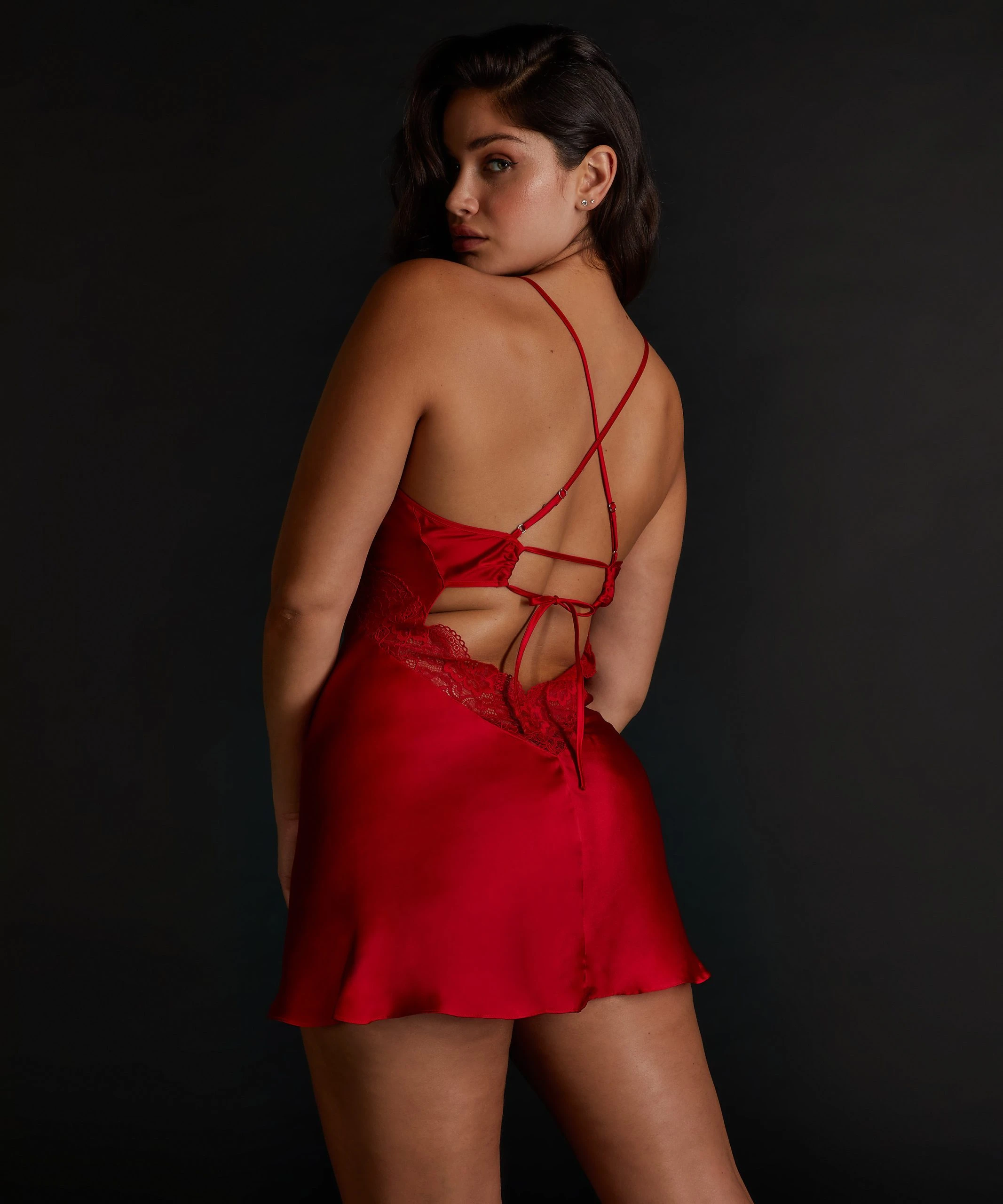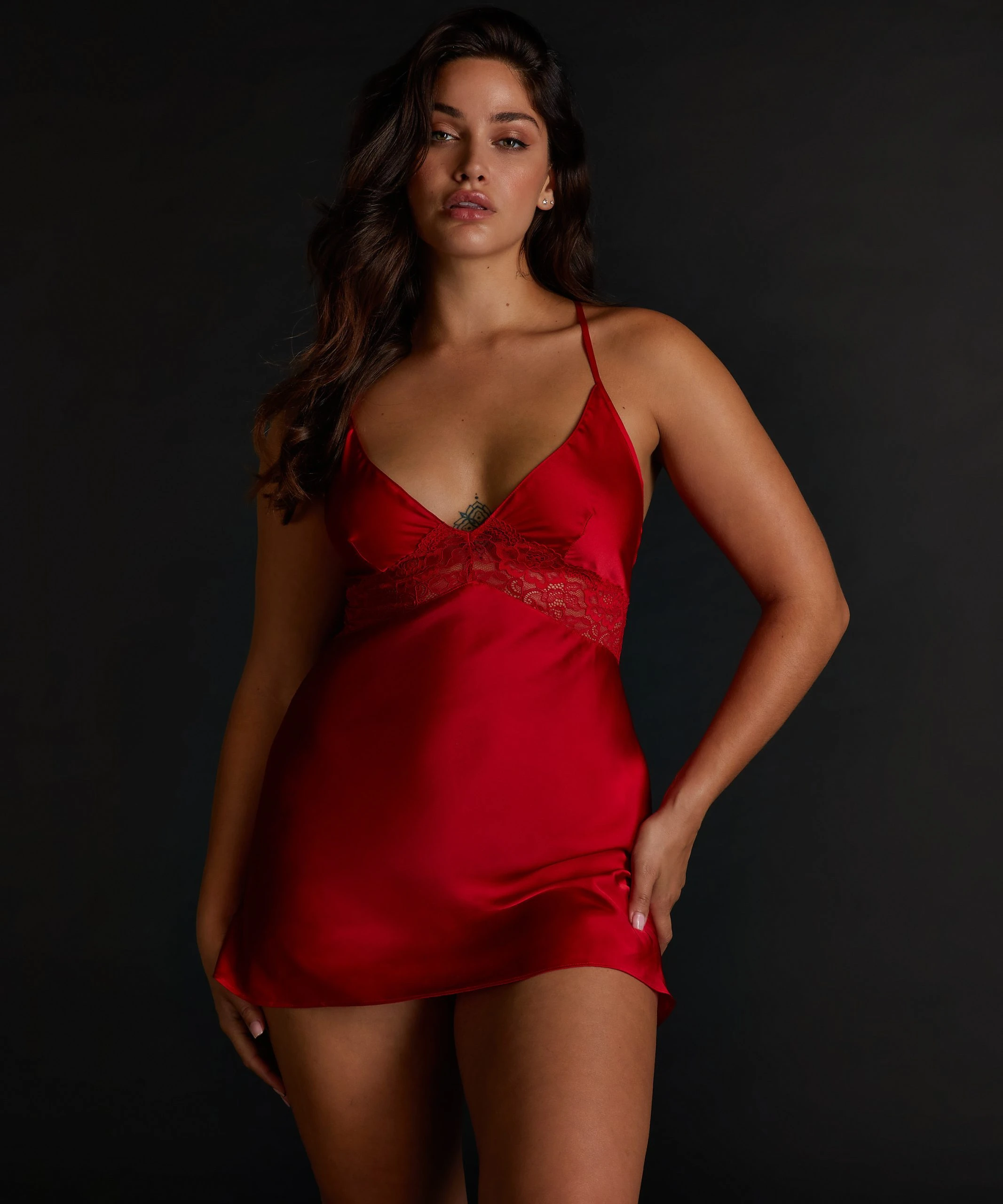 Dieses wunderschöne Slipkleid möchten Sie unbedingt haben! Es hat Spitzendetails und einen tiefen V-Ausschnitt. Sexy und bequem zugleich!