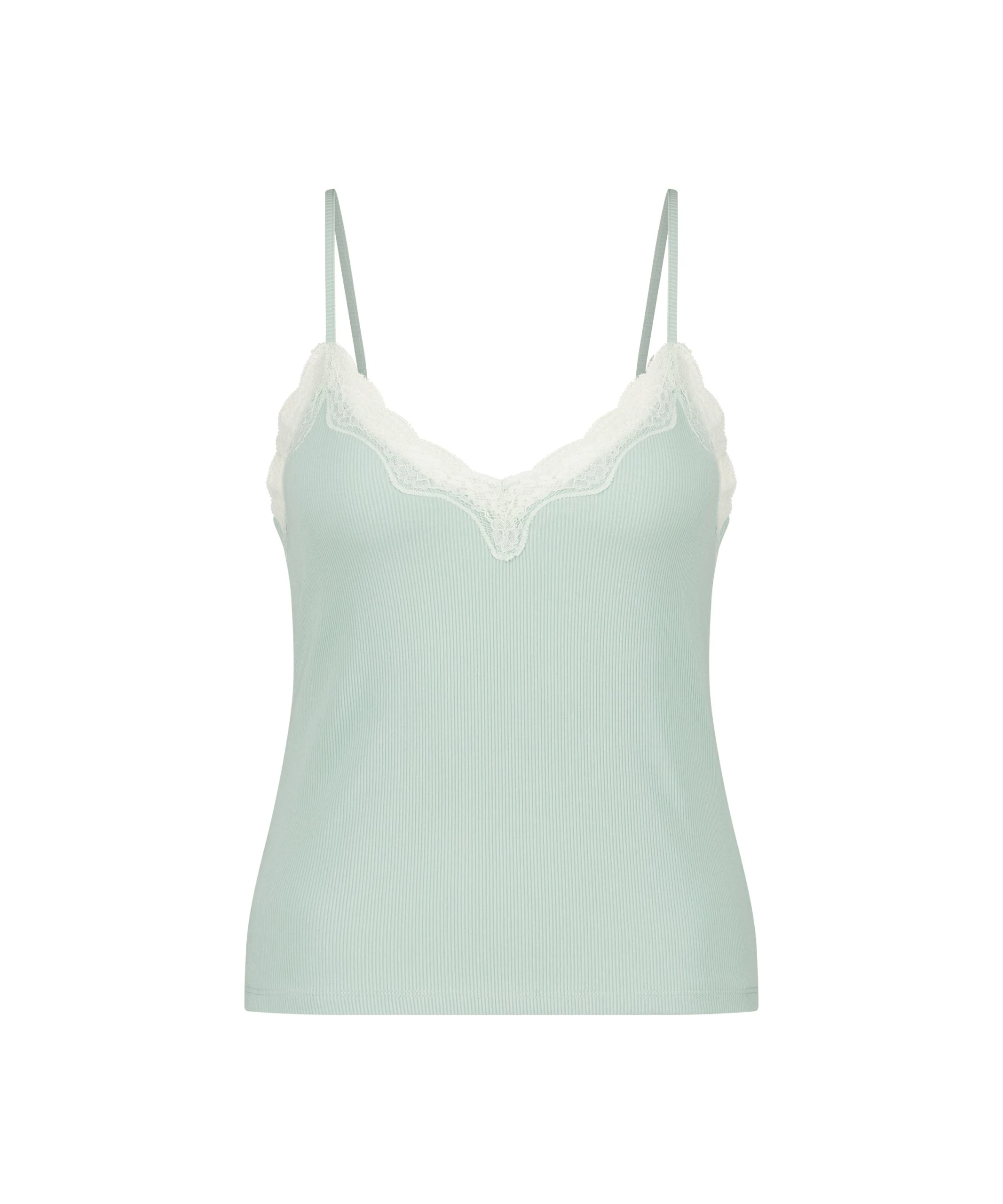 Sind Sie auf der Suche nach einem schönen, herrlich sitzenden Top? Dann ist dieses genau das Richtige für Sie! Dieses Top ist aus einem Rippstoff. Der Rundhalsausschnitt ist mit einer Biese aus Spitze versehen.